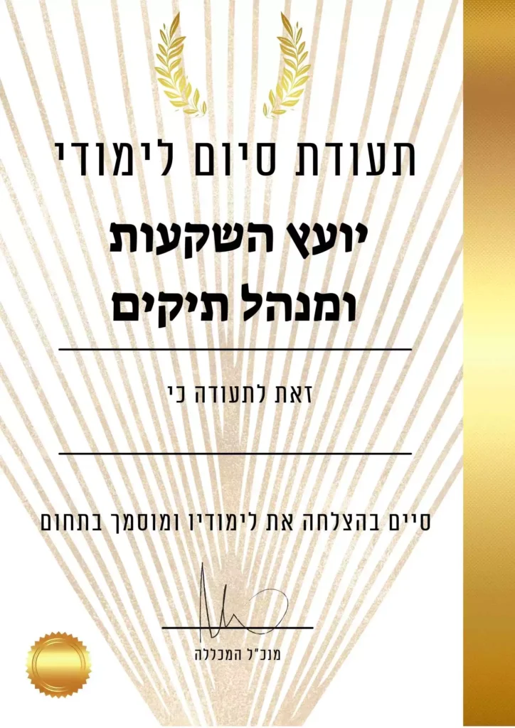 בסוף קורס ניהול תיקים וייעוץ השקעות אתם תדעו לפתור כל בעיה הקשורה בתחום ותוכלו לענות על כל שאלה שהמעסיק שלכם אי פעם ירצה לדעת.