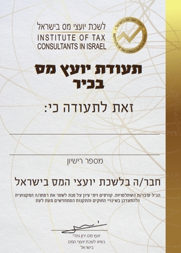 הסמכה רישמית ותעודה מטעם לשכת יועצי המס